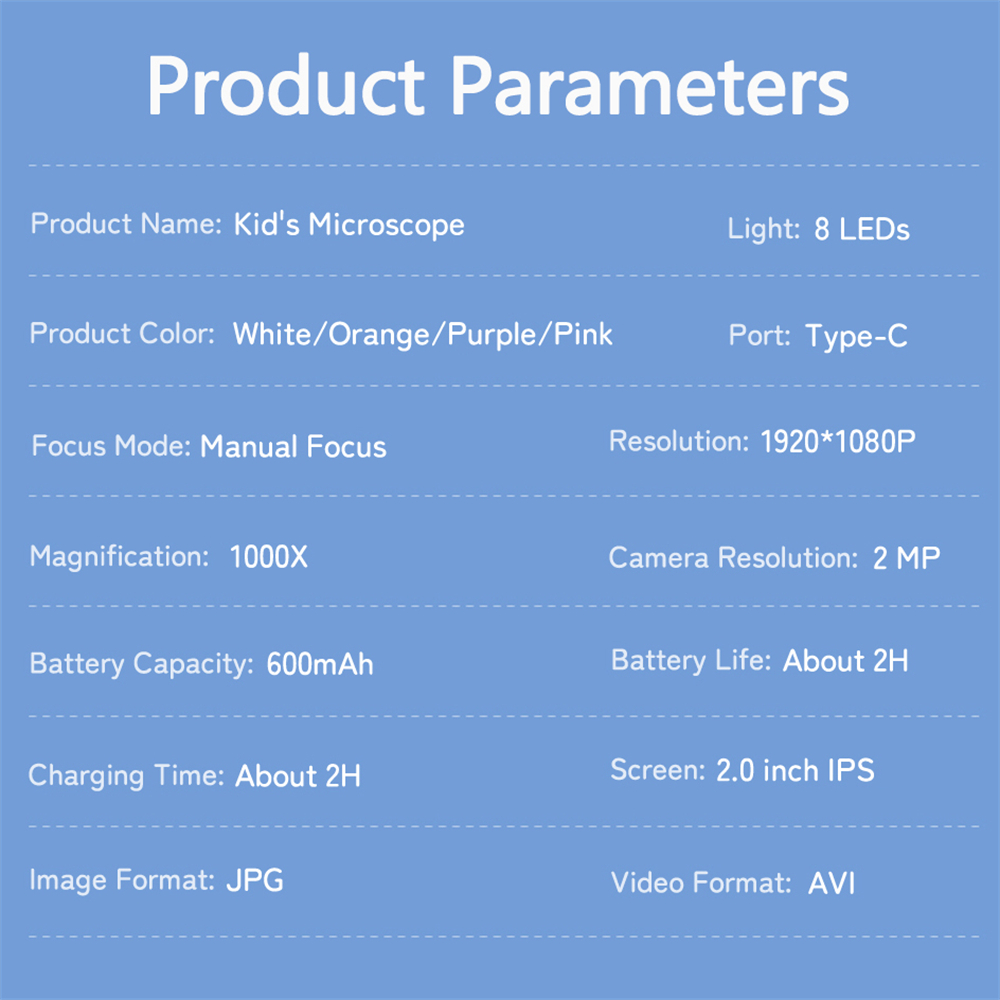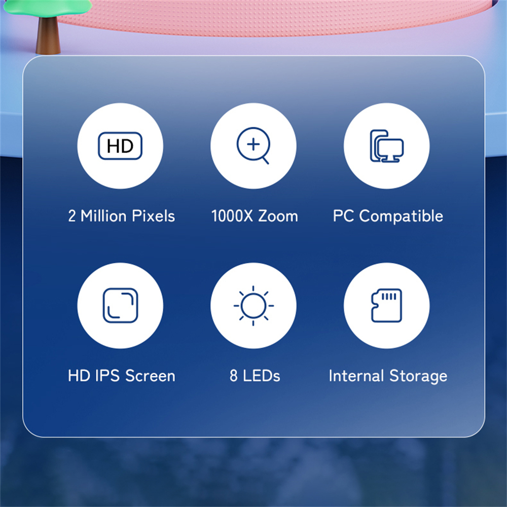 1000X Handheld Microscope for Kids 2.0" Screen Rechargeable Mini Pocket Digital Microscopes Portable Edu Gift Children Students